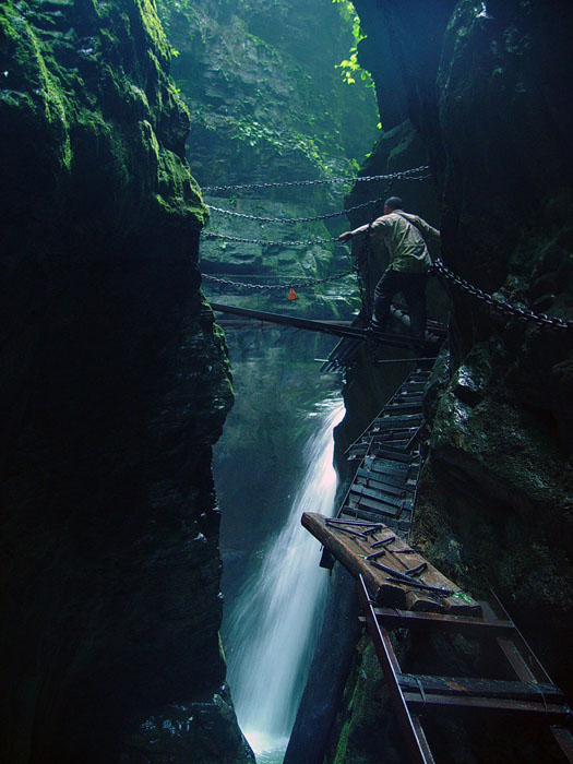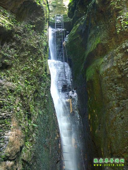 坐龍峽擁有中國(guó)第一條特種游道。所有游道均建于峽谷深處,依山取勢(shì),既經(jīng)細(xì)心雕琢聽卻又渾然天成。粗樸的板栗木棧道,可以讓你零距離的親近那一潭碧幽、聽聞山泉叮咚;精巧的跳墩,可以讓你媳戲流泉、觸感溪瀑;原質(zhì)的石坎道,讓你不得不調(diào)動(dòng)全部的身心能量悉心攀援、感悟峽谷;有驚無險(xiǎn)的鐵梯,讓你伴著腳下轟鳴的溪水,在驚怵中體味一份快慰。 出口出的土家山寨,保留了古樸獨(dú)特的生活習(xí)俗。一塊臘肉就一口醇香的“苞谷燒”會(huì)讓你洗去所有的疲憊,在輕松中憨厚的主人向你講述過去強(qiáng)人出沒的故事