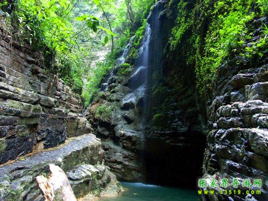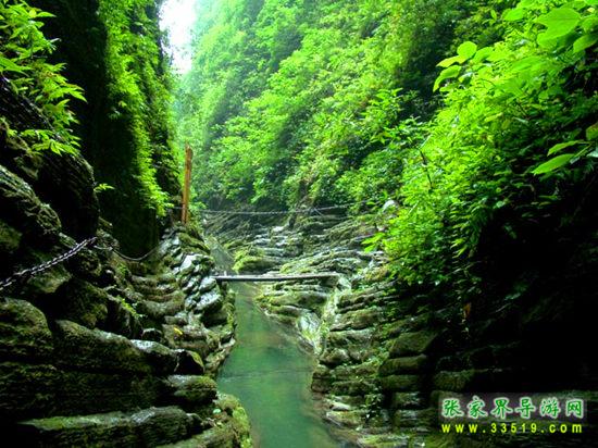 坐龍峽,經(jīng)由300萬年大自然的風(fēng)吹、水蝕而成,一直隱逸于湘西茫茫十萬群山之中。它長(zhǎng)約3500米,最大高差達(dá)300余米;寬處不足丈余,窄處僅容一人通過;谷內(nèi)絕壁縱疊,溪瀑橫懸,崖樹斜逸,異草遍被。