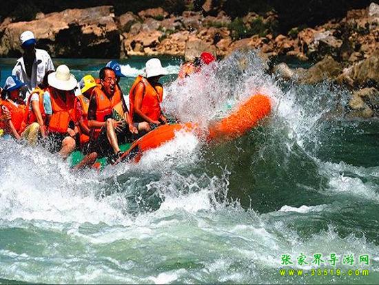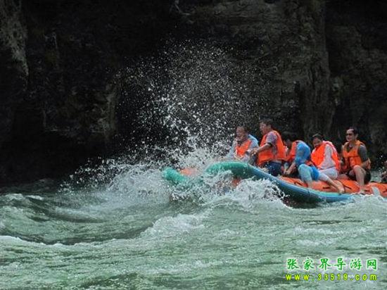 茅巖河漂流段是大庸城西20公里青魚潭往北一段。茅巖河雖灘險流急,但河床坡度小,水位落差不大;險灘較短(一般僅20余米長),而險灘與險灘間的距離卻較長(一般均逾千米),故浪濤適中,漂流有驚無險。茅巖河主要景點有:血門溝、洞子坊、茅巖灘、夾兒溝、溫塘溫泉、麻陽古渡、茅巖河峽、水洞子瀑布等。沿河兩岸青山綠水、風(fēng)光如畫,故又稱“百里畫廊”。