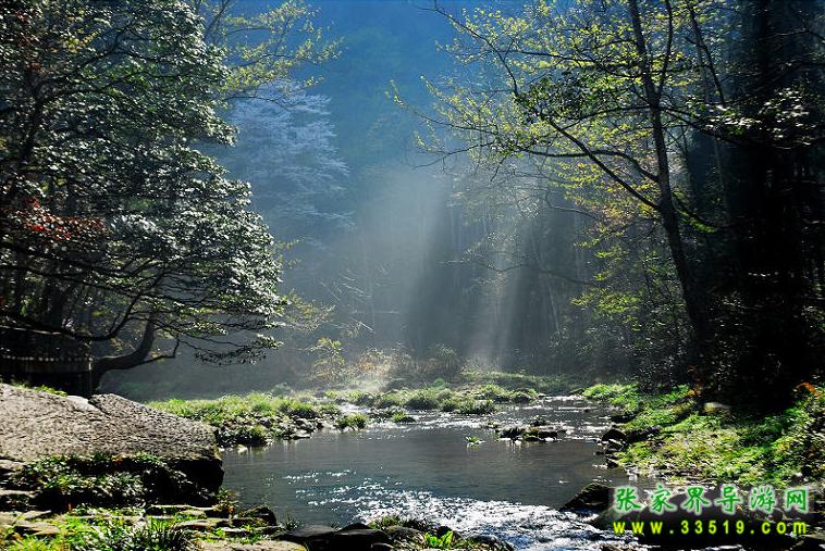 武陵源水繞山轉,據(jù)稱僅張家界就有“秀水八百”,眾多的瀑、泉、溪、潭、湖各呈其妙。金鞭溪是一條十余公里長的溪流,從張家界沿溪一直可以走到索溪峪,兩岸峽谷對峙,山水倒映溪間,別具風味。水使山林更有生氣,金鞭溪是一條長長的溪流,有十幾公里長,從張家界沿溪一直可以走到索溪峪,它潺緩地流過紙草潭、跳魚潭、楠木坪和天子洲,最后由索溪峪注入澧水。兩岸峽谷對峙,紅巖綠樹倒映溪間。走在溪邊小徑上,一路清涼沁人心脾。踏木橋石階,觀花斑魚潭戲水,聽布谷鳥的叫聲在山谷間回蕩。