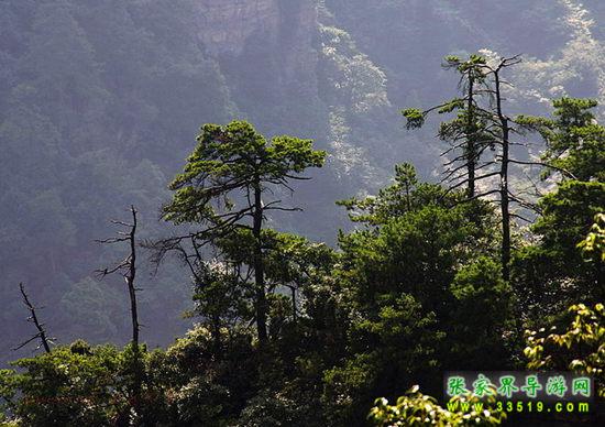 武陵源植物資源十分豐富:在眾多的植物中,武陵松分布最廣,數(shù)量最多,形態(tài)最奇,有“武陵源里三千峰,峰有十萬八千松”之譽。