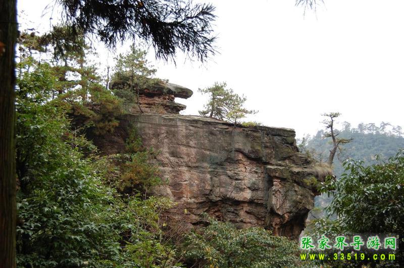 這座拔地而起高300多米的巨大山峰,四面絕壁,頂部面積約4公頃,上面長著黑黝黝一大片原始森林。20世紀70年代,曾有林場工人試圖爬上去考察,但因下雨石滑,無功而返。借助望遠鏡,可以清楚地看到上面生長的武陵松——說起武陵松(又名巖松),可能沒有黃山松那么出名,但其特色卻絲毫不遜于黃山松,堪稱張家界一絕。有人說:“桂林醉人是漓江清,峨眉風流是金頂云,華山險在倚天看,廬山美在泉中聽,不及湘西武陵源,數(shù)千奇峰纏綠云,石上長森林。”“石上長森林”說的就是武陵松。她“千年長不大,萬年長不老”,長在絕頂之上或絕壁之中,不論風吹雨打,嚴寒酷署,總是精神煥發(fā),一看見這瘦小而蒼勁的武陵松,就不由讓人頓生對生命的敬意。