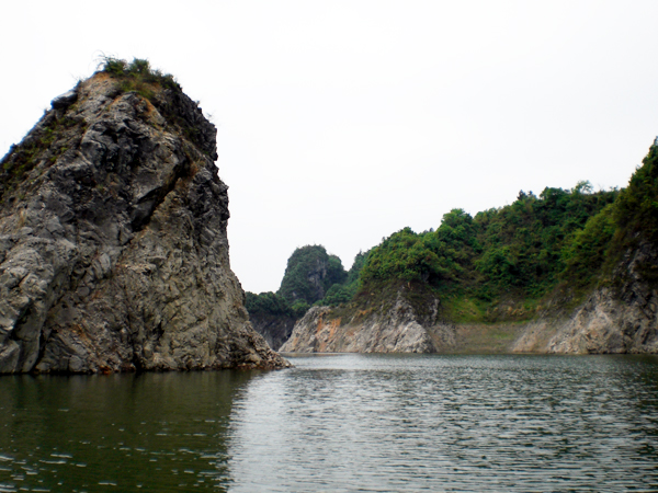 湖南省慈利縣趙家埡水庫(kù)始建于1972年,是一座以抽水蓄能發(fā)電為主,兼具蓄洪防洪、抗旱灌溉、營(yíng)林旅游、水產(chǎn)養(yǎng)殖等多功能于一體的中型水利水電骨干工程,水庫(kù)本身集雨面積33.5km2,外引集雨面積24Km2。水庫(kù)樞紐大壩為粘土斜墻堆石壩,壩底高程為500m,壩高46m,由于水庫(kù)屬封堵天然溶洞而建,大壩潛于水下,趙家埡水庫(kù)因此被稱(chēng)為我國(guó)第一座“無(wú)壩”水庫(kù)。