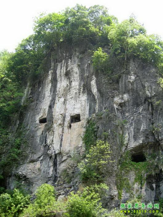 箱子巖位于慈利縣高橋鄉(xiāng)金坪村,慈(利)洞(溪)公路繞其麓,方圓 1.7公里。其巖南側(cè)高約200米,長約80米,垂空如削,全由長方形巖塊構(gòu)成。 巖塊一般長約6米,高約2米,墨黑而澤光,酷似黑皮箱,故有箱子巖之名。這種巖塊,橫看一排排,縱看一層層,不計(jì)基數(shù)。整個箱子巖,就象用箱子砌成的半邊山,陽光照之生輝,雨露潤之如鏡。明鏡巖即被引為攬奇尋勝之所。
