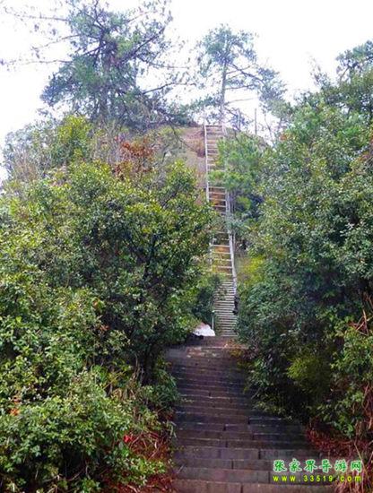 武陵源從來不缺險峰奇崖,但是它們又各有千秋,絕不雷同。一步登天就是這樣一座“個性”十足的奇峰。山峰陡峭,徒手難以登頂,游客需借助層層鐵梯,手腳并用,緩緩上行。等你跨完了最后一梯,登上了峰頂,只見一片平整的闊地,中有古松雜列,且有護欄可供依憑,頓時心胸為之一暢,真有“一步登天”之感。