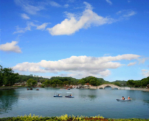 君山又是一個秀麗的綠洲,島上的草木自古就很聞名。現(xiàn)在每逢初春漲水之前,湖灘上綠草綿綿,野花斑斕,頗具草原風味;一到夏天水漲,葦葉青青,水鳥出沒,又是一派蘆蕩景象。君山有各種各樣的樹,多達200余種,各種花卉,四時怒放,真是青碧連云,香飄全島。叢綠之中,尤以竹林、茶園最富特色。
