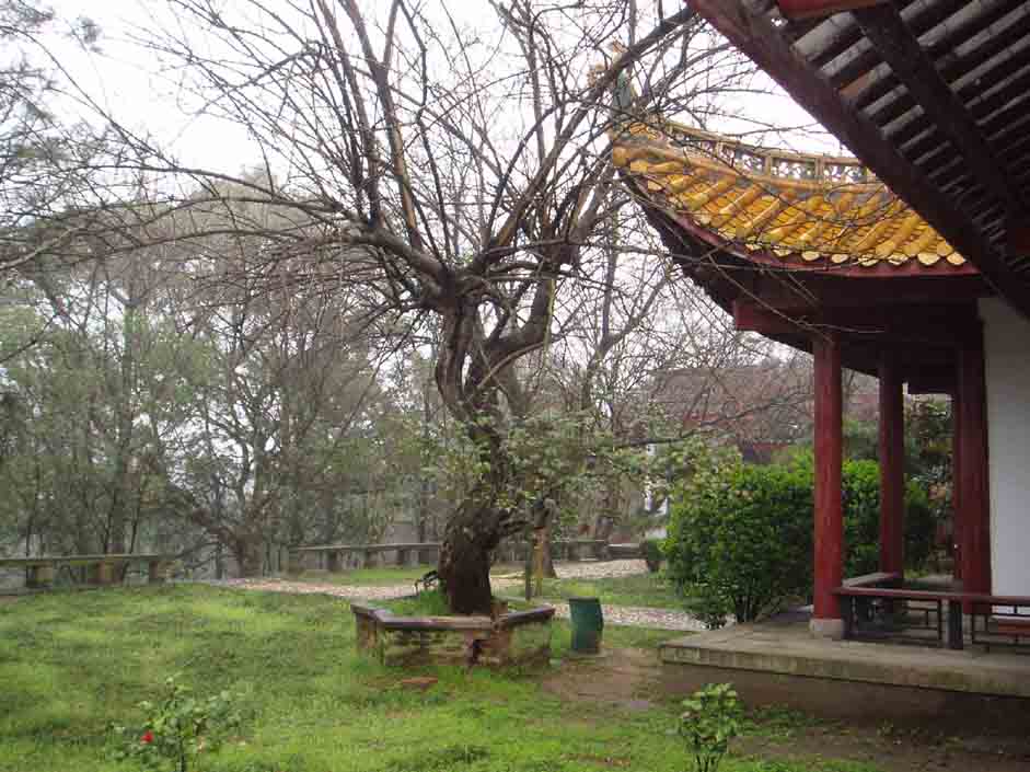 相傳四千多年前,舜帝南巡,兩個受妃娥皇、女英隨之趕來,船被大風阻于君山,二妃突然聽到舜帝已死于蒼梧,悲痛欲絕,望著茫茫的湖水,攀竹痛哭淚水灑遍了山上的竹林,遂成斑竹,不久,二妃憂郁成疾,死于洞庭湖,葬于山之東麓,為紀念二妃而改洞庭山為君山,現(xiàn)是1979年岳陽市政府按(清)彭玉麟重修的墓樣維修的。墓為石砌,前立石柱,上雕麒麟 、雄獅、大象、中堅、“虞帝二紀之墓”墓碑。墓前10米處有一對石引柱,上有一副楷書石刻對聯(lián):“君妃二魄芳千古,山竹諸斑淚一人”。