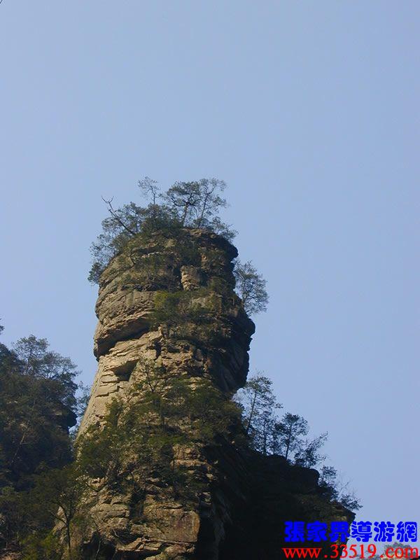 (亂竄坡)左邊這個坡,相傳向王天子兵敗后主力部隊從這里撤退上袁家界,進(jìn)天子山。這時,官兵追上來了,埋伏上的士兵一刀砍斷葛藤,滾木擂石潮水般砸了下來,打得官兵四處亂竄,以后就把這個坡叫“亂竄坡”。從亂竄坡可以上著名風(fēng)景游覽線袁家界,那里有后花園、迷魂臺、天下第一橋、天懸白練瀑布;還可以取道上天子山、進(jìn)楊家寨。大家抬頭看,就是這座孤峰,叫羊寨,那里是一片原始森林