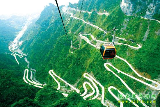 登天門山不需要爬山,至位于張家界市區(qū)的天門山索道下站,乘世界最長高山客運索道—天門山索道(長7.5公里)直達(dá)山頂,沿途可先鳥瞰美麗山城的醉人景 致,再飽覽清新靜謐的鄉(xiāng)村田園,然后緩緩飛渡進(jìn)奇峰險壑的懷抱中,在山尖與陡崖之上不斷爬升,體驗騰云飛翔的刺激與震撼,30分鐘到達(dá)天門山頂原始空中花園。